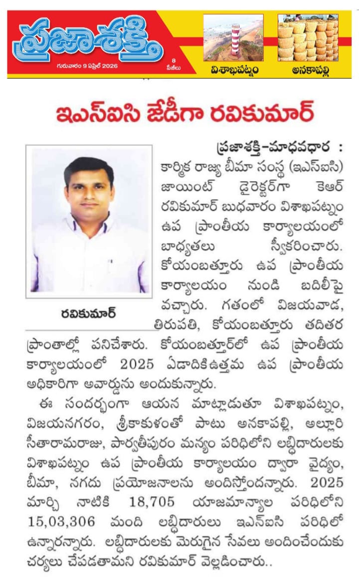 Shri K.R.Ravi Kumar new Joint DIrector of ESIC in Visakhapatnam size:()